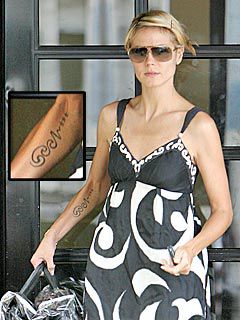 -Smiling heidi klum ravishing klum It is known that during her relationship with the italian businessman vito schnabel, 34, and her marriage to seal, the german model got tattoos on her body. This all in one woman has left no spheres to spell her aura, be it small screen or fashion architecture, singer or television producer, prose writer, scripter or an actress. And wears brands like sergio rossi, versus & versace. Heidi klum got the tattoo may 2008 as a fourth anniversary present. “this is my first red carpet,” the budding model. “it was our fourth wedding, and we wanted to have our. Heidi klum removing her seal tattoo.>>