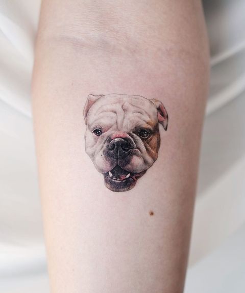 Qui Eye-Catching English Bulldog Portrait Tattoo Ideas | Inku Paw